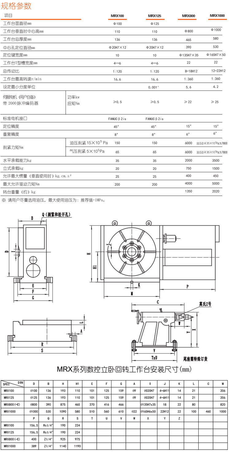 MRX系列數(shù)控立臥回轉(zhuǎn)工作臺